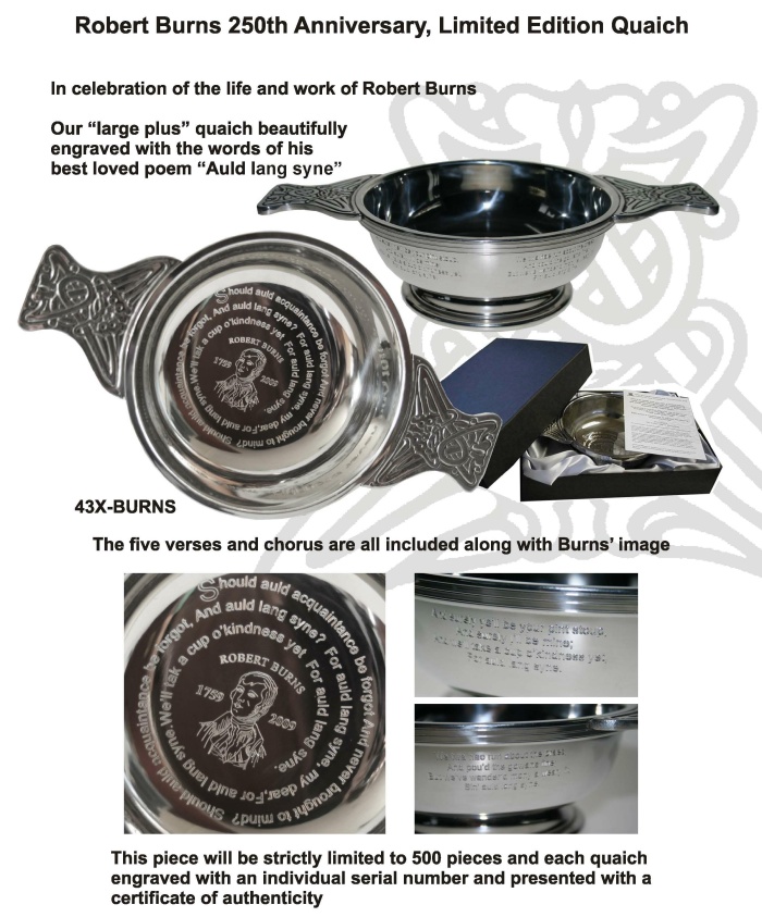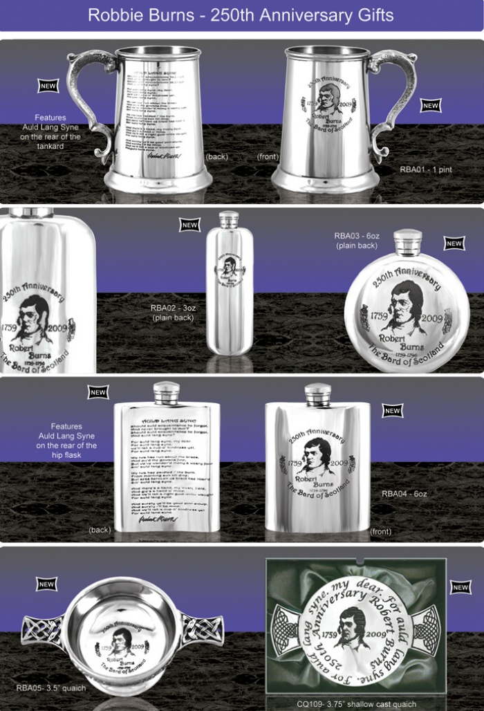 250th Anniversary pewter gifts of Robert Burns the bard of Scotland.