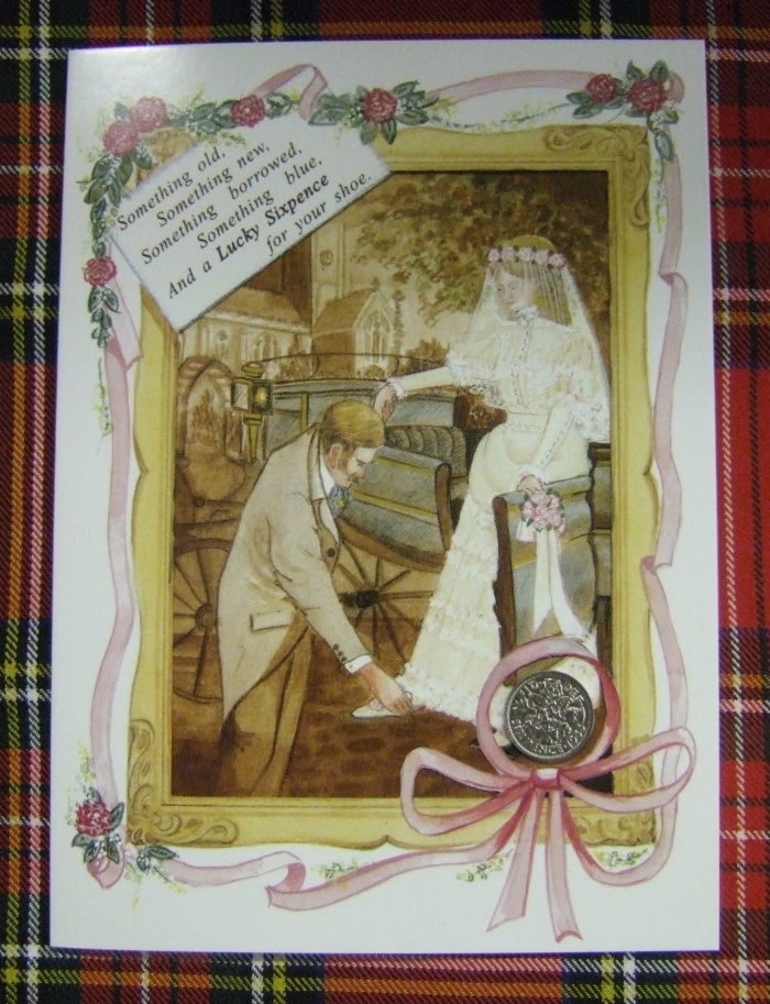 The old Scottish custom is for the bride to wear a lucky sixpence in her shoe