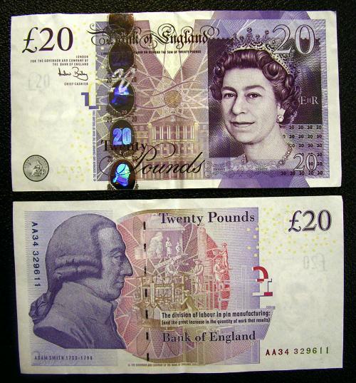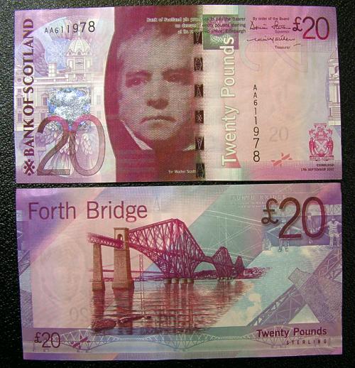 New Scottish £20 note with Sir Walter Scott on front and the Forth Rail Bridge on back