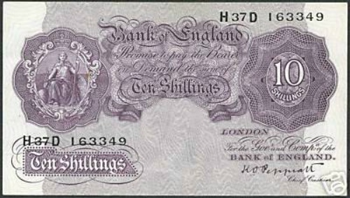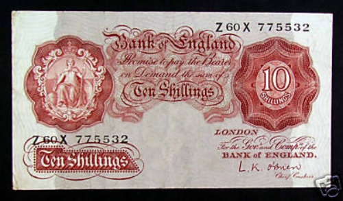 Old Ten Shilling Britannia note Issued from 1928 - 1961