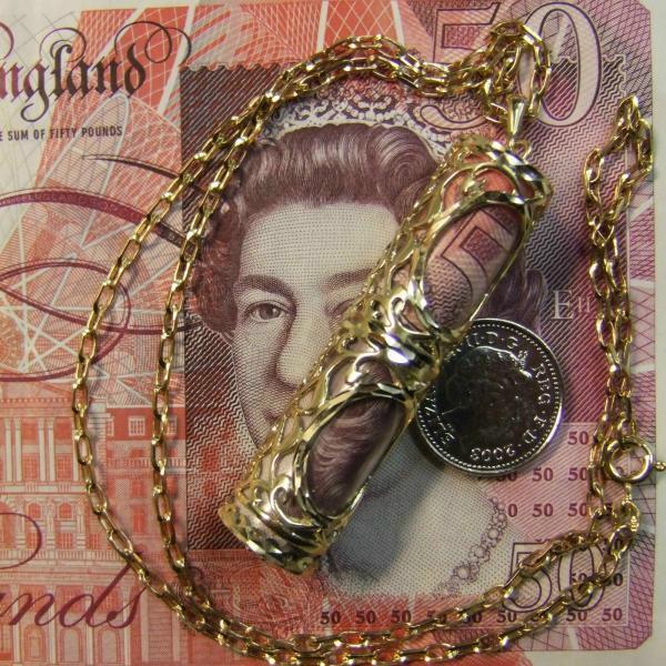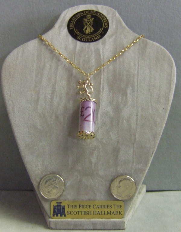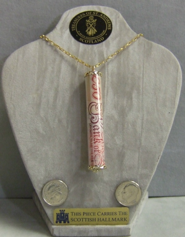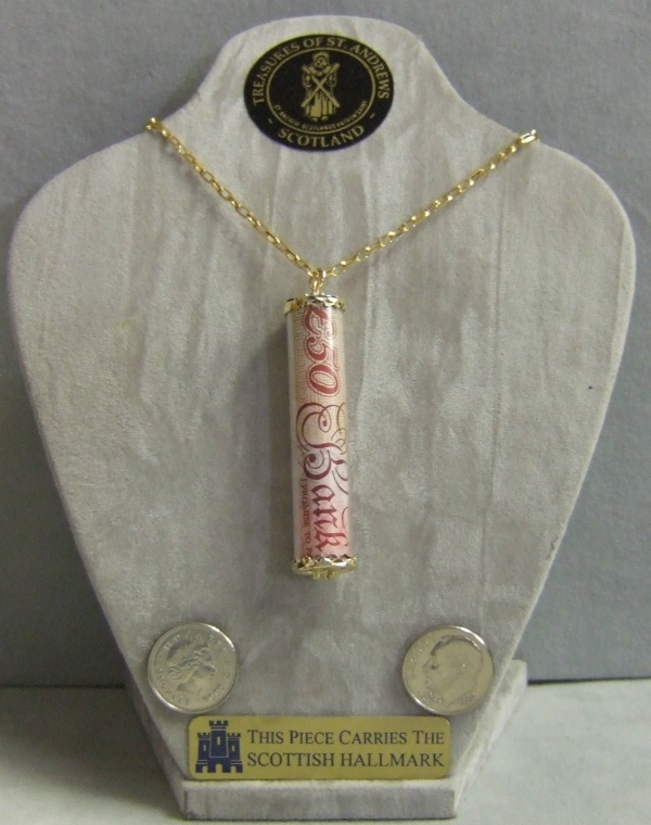 GENUINE ENGLISH FIFTY POUND NOTE IN DIAMOND CUT PENDANT & CHAIN