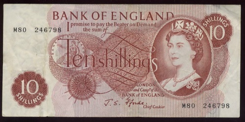 QUEENS HEAD TEN SHILLINGS NOTE ISSUED FROM 1961 - 1970