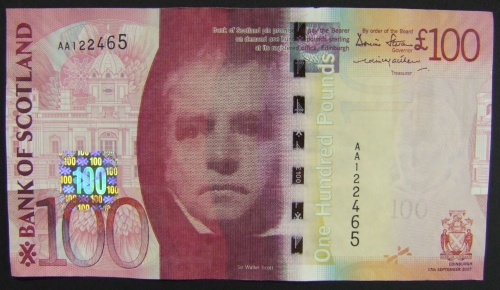 New Scottish £100 note with Sir Walter Scott on front and the Kessock Bridge on back