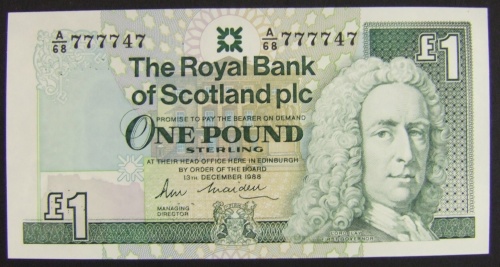 SCOTTISH ONE POUND NOTE WITH EDINBURGH CASTLE ON BACK