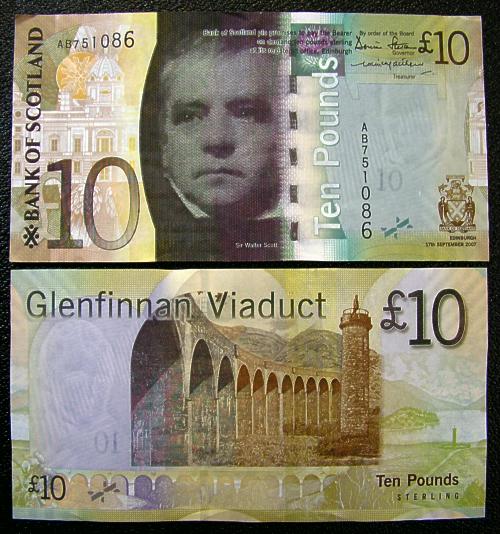 New Scottish £10 note with Sir Walter Scott on front and the Glenfinnan Viaduct on back