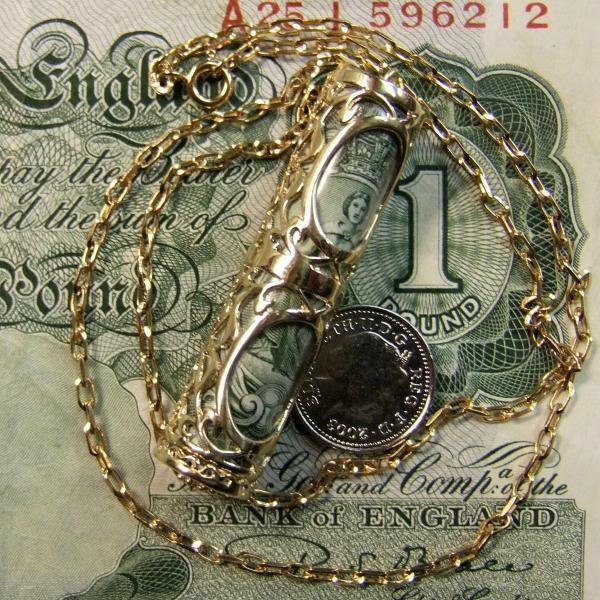 WAR EMERGENCY BLUE £1 NOTE IN PENDANT & CHAIN Ref F